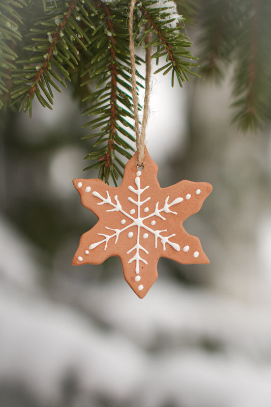 Tuo kotiisi lämpöä tällä kauniilla ja rustiikkisella käsintehdyllä sydänkoristeella! Savi, herkät valkoiset kuvioinnit ja luonnollinen juuttinaru tekevät siitä täydellisen lisän joulukuuseen, seinälle tai lahjapakettiin.